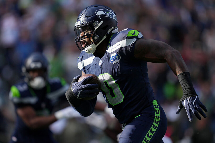 SEATTLE, WASHINGTON – NOVEMBER 09: DeMarcus Lawrence #0 of the Seattle Seahawks runs for a touchdown after recovering a fumble against the Arizona Cardinals during the first quarter at Lumen Field on November 09, 2025 in Seattle, Washington. (Photo by Soobum Im/Getty Images)